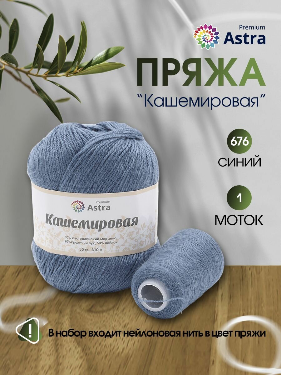 Отзывы на Пряжа для вязания Astra Premium 'Кашемировая' (Cashmere), 50г, 310м (20% кроличий пух, 30% австралийский меринос, 50% нейлон) + нить 20г (676 синий)