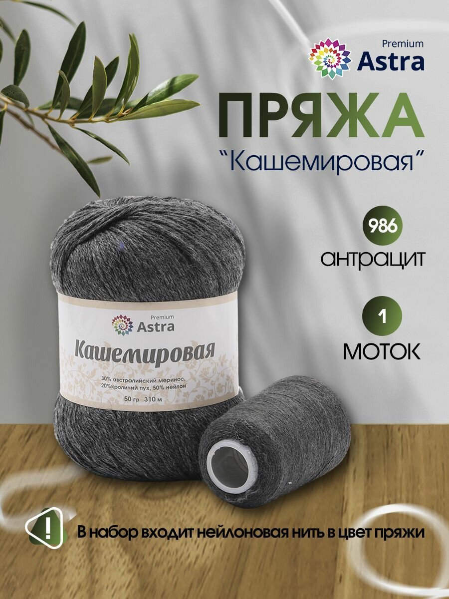 Отзывы на Пряжа для вязания Astra Premium 'Кашемировая' (Cashmere), 50г, 310м (20% кроличий пух, 30% австралийский меринос, 50% нейлон) + нить 20г (986 антрацит)