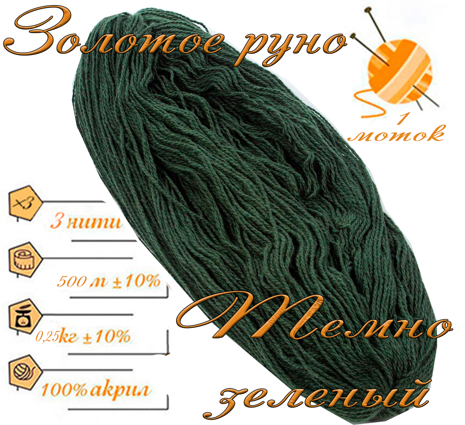 Отзывы на Нитки для ручного вязания 1шт.0,25кг/500м.пряжа трехниточная в пасмах для вязания крючком, спицами 250-300гр/шт.из чистого акрила цвет:Темно зеленый