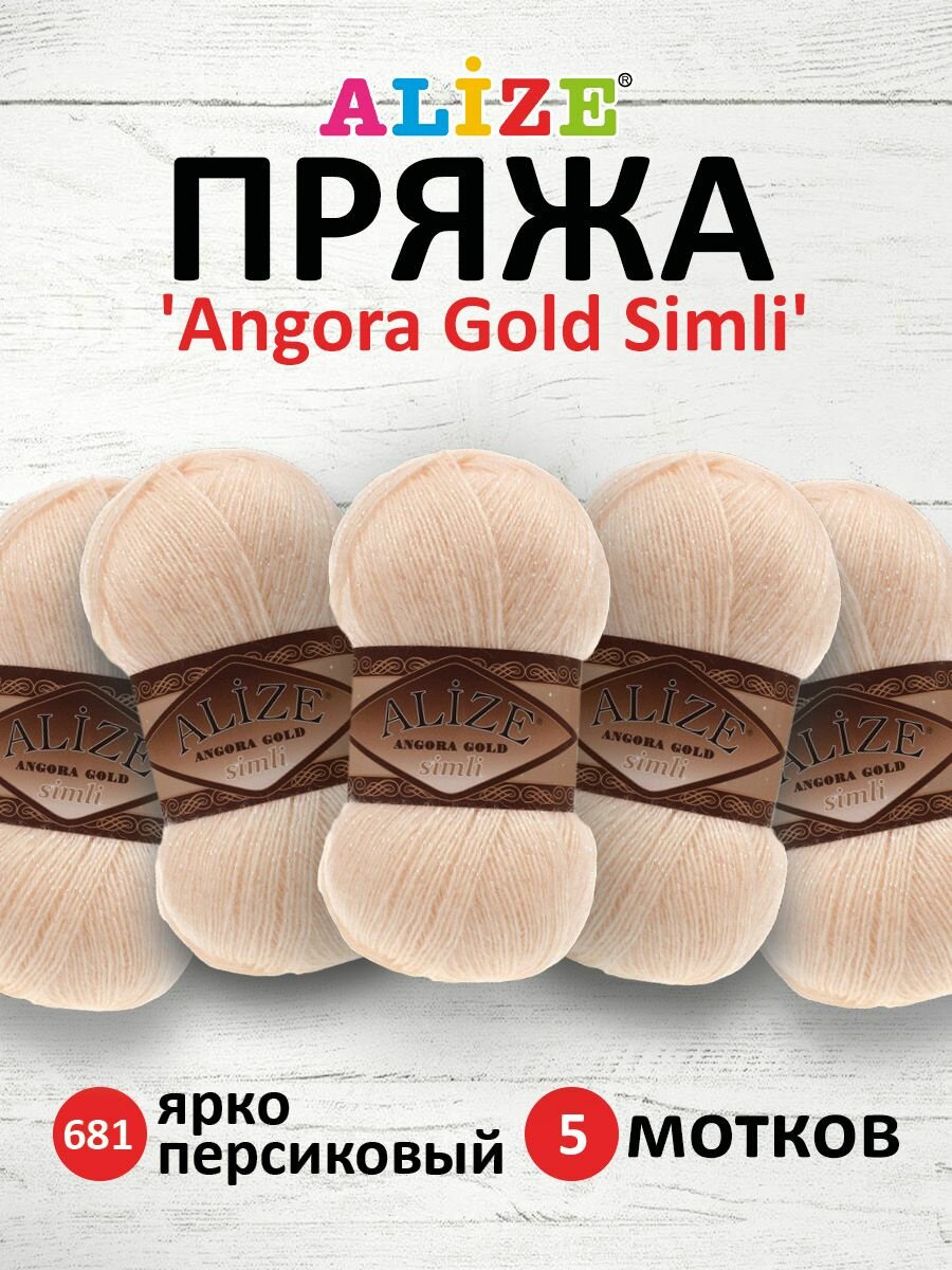 Пряжа Alize Angora Gold simli персиковый (681), 75%акрил/20%шерсть/5%метанит, 500м, 100г, 5шт информация: