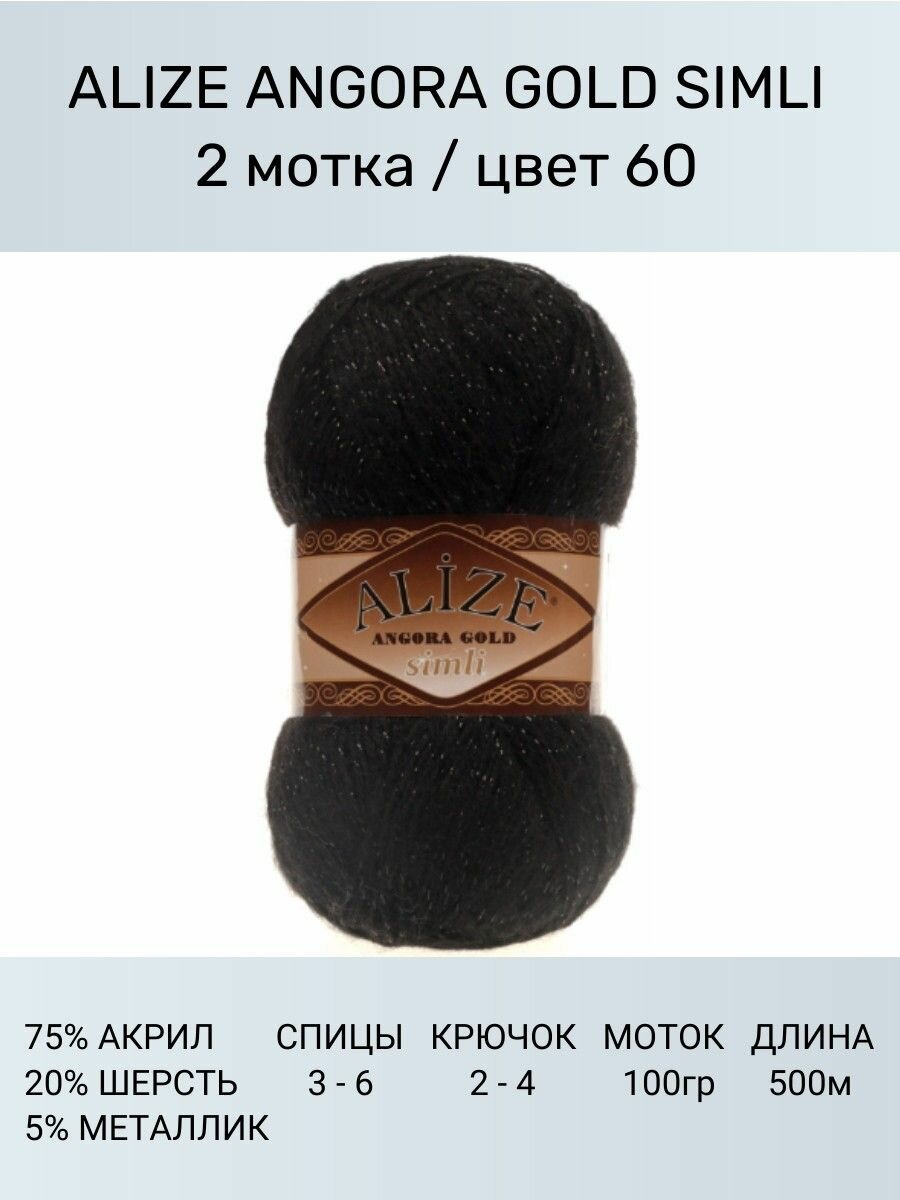 Пряжа Alize Angora Gold Simli (Ангора Голд Сим) 60 черный 20% шерсть, 5% металлик, 75% акрил 100г 500м 2шт информация: