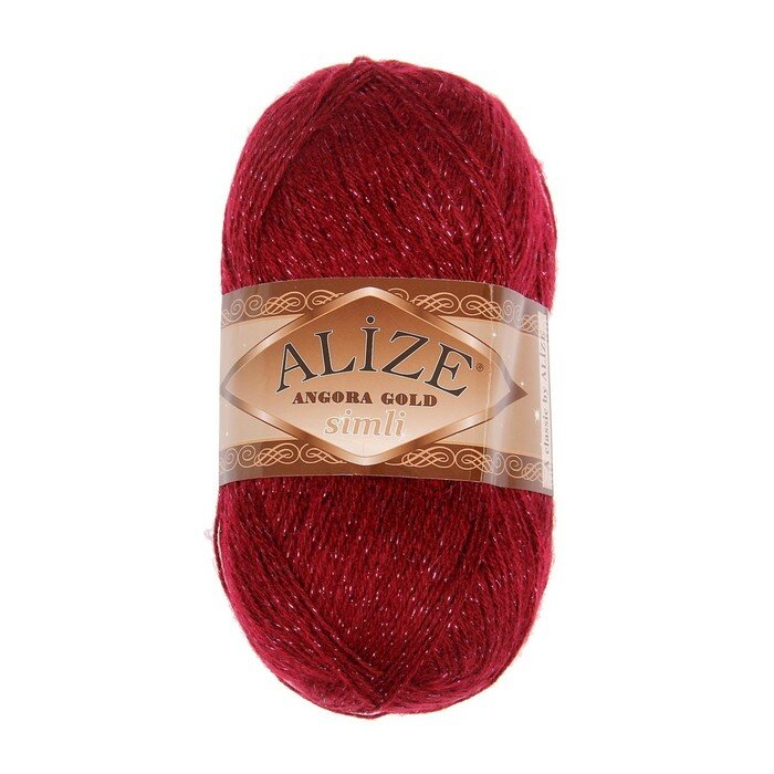 10 цен на Пряжа Alize Angora Gold simli бордовый (57), 75%акрил/20%шерсть/5%метанит, 500м, 100г, 1шт