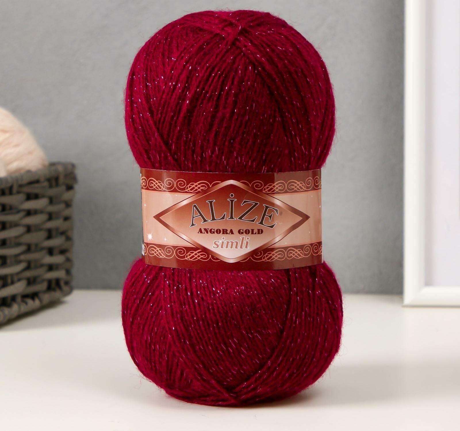 Пряжа для вязания ALIZE 'Angora Gold Simli', 100г, 500м (20% шерсть, 5% металлик, 75% акрил) (57 бордовый), 5 мотков