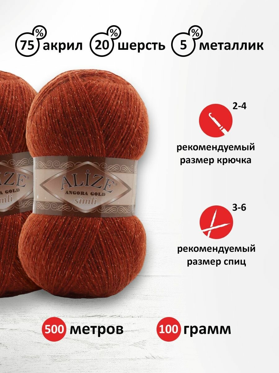 10 цен на Пряжа Alize Angora Gold simli терракот (36), 75%акрил/20%шерсть/5%метанит, 500м, 100г, 5шт