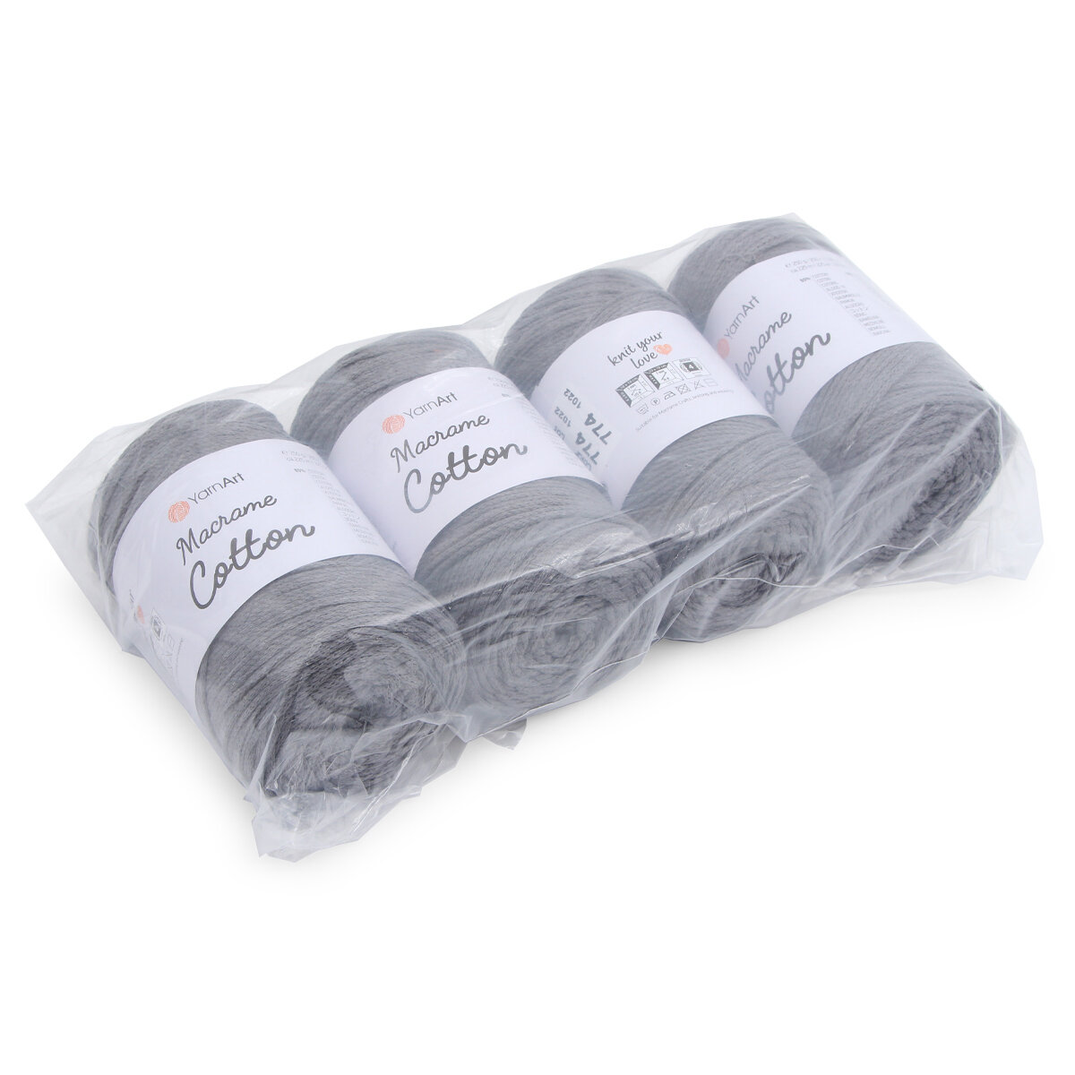 Пряжа для вязания и плетения YarnArt Macrame Cotton, цвет 758 темно-серый, моток 250г, 225м, 4 мотка 1 780 ₽