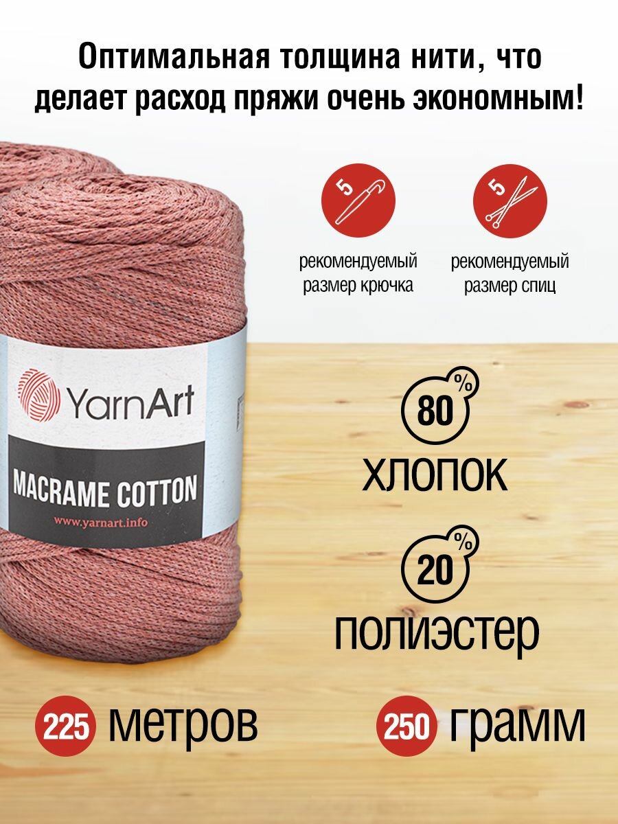 Пряжа для вязания YarnArt 'Macrame Cotton' 250гр 225м (80% хлопок, 20% полиэстер) (792 пыльный кедр), 4 мотка информация: