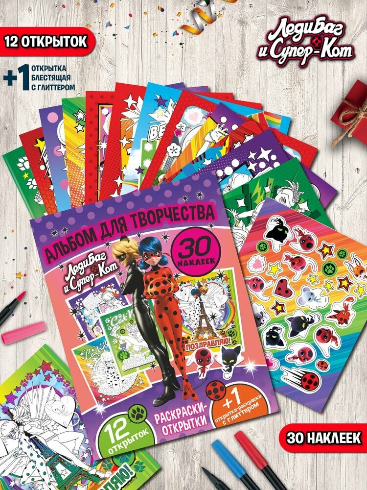 10 цен на Альбом для творчества с наклейками. Подарок своими руками. Леди Баг и Супер-Кот. Подарок для супергероя
