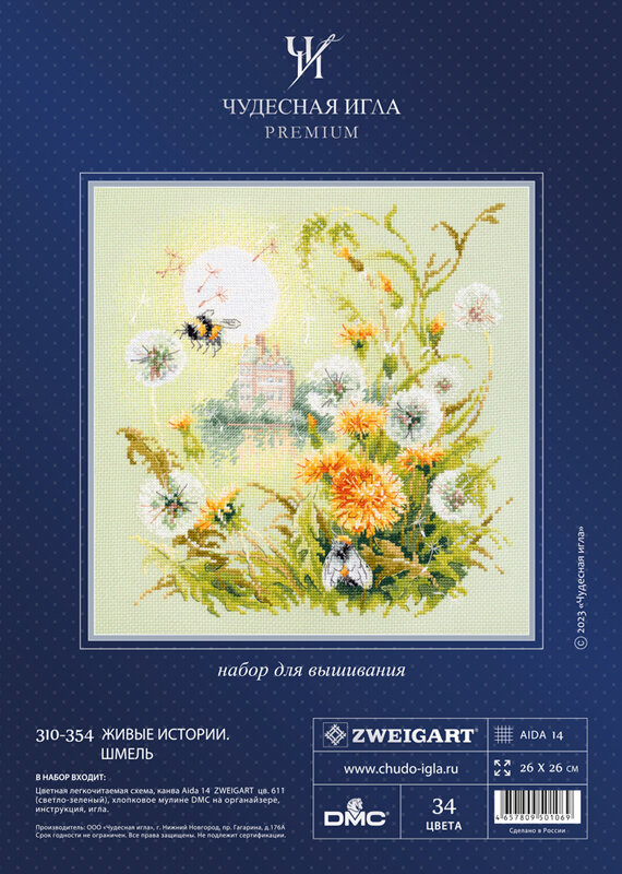 Набор для вышивания Чудесная Игла 310-354 "Живые истории. Шмель" 26*26см информация: