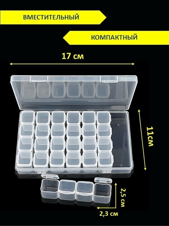 Органайзер для мелочей / бокс / 28 ячеек / для бисера / для страз / для бусин / таблетница информация: