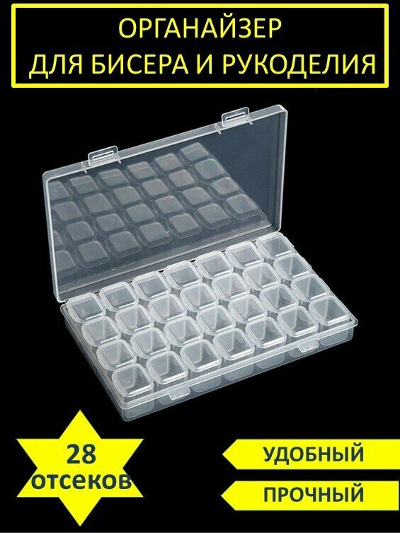 Отзывы на Органайзер для мелочей / бокс / 28 ячеек / для бисера / для страз / для бусин / таблетница
