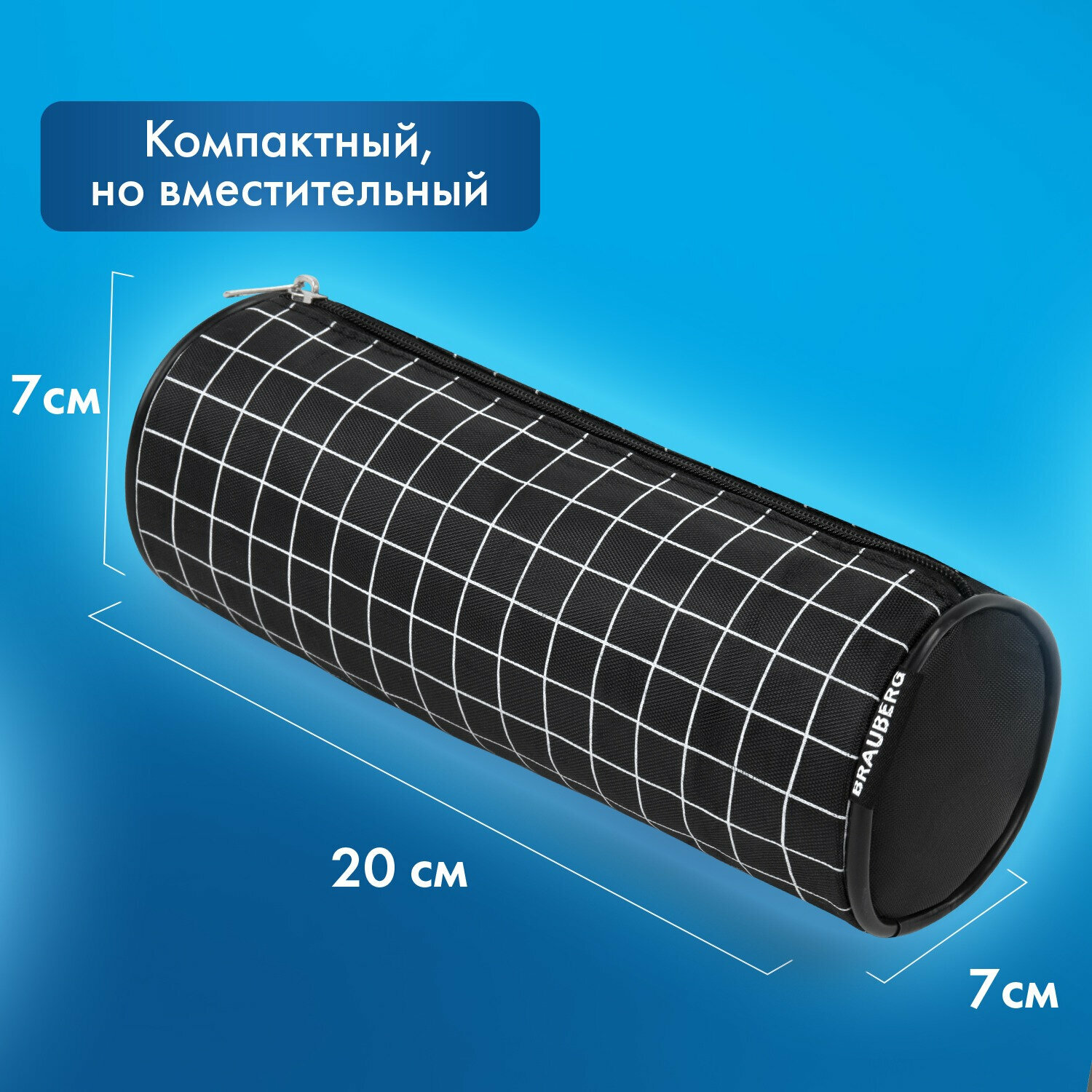 Пенал-косметичка Brauberg, Checkered, черный, 20х7х7см, 272298 информация: