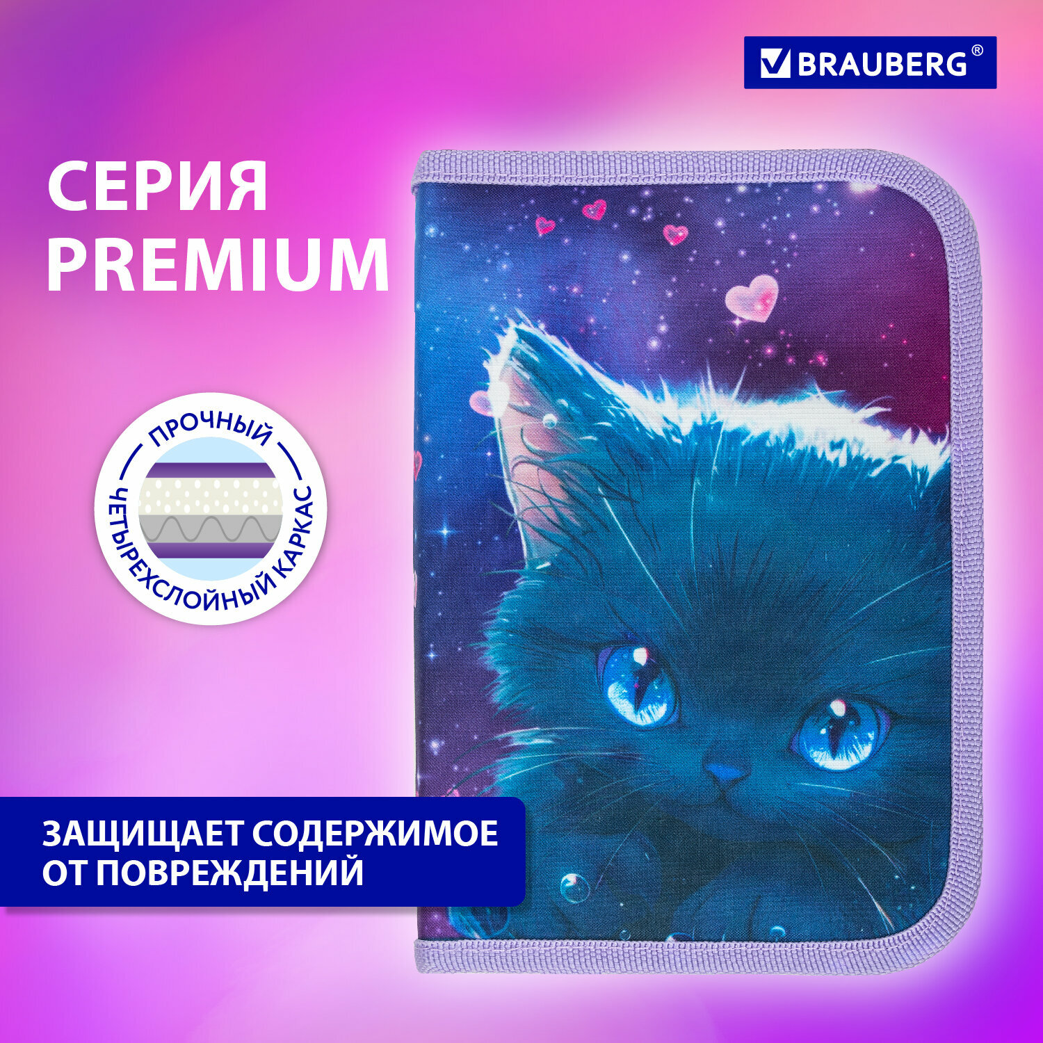 Отзывы на Пенал Brauberg, 1 отделение, 1 откидная планка, полиэстер, 21х14 см, Anime cat, 272322