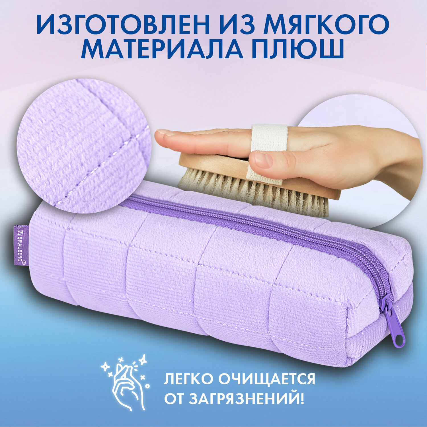 Пенал Brauberg, мех, 21х6х6 см, фиолетовый информация: