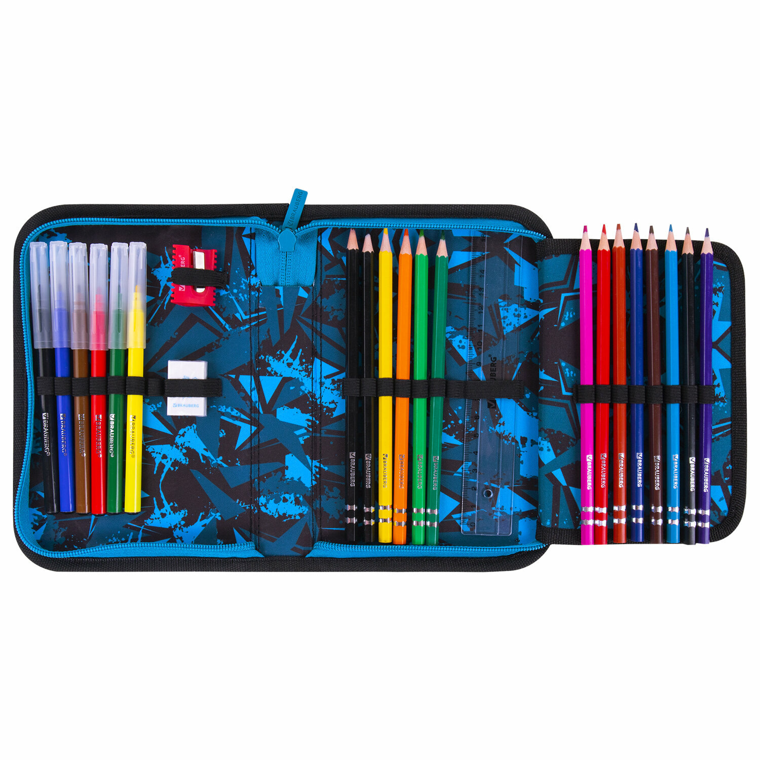 Пенал школьный с наполнением для ручек, карандашей для мальчика / подростка с наполнением Brauberg, 1 отделение, 24 предмета, 21х14 см, 270724