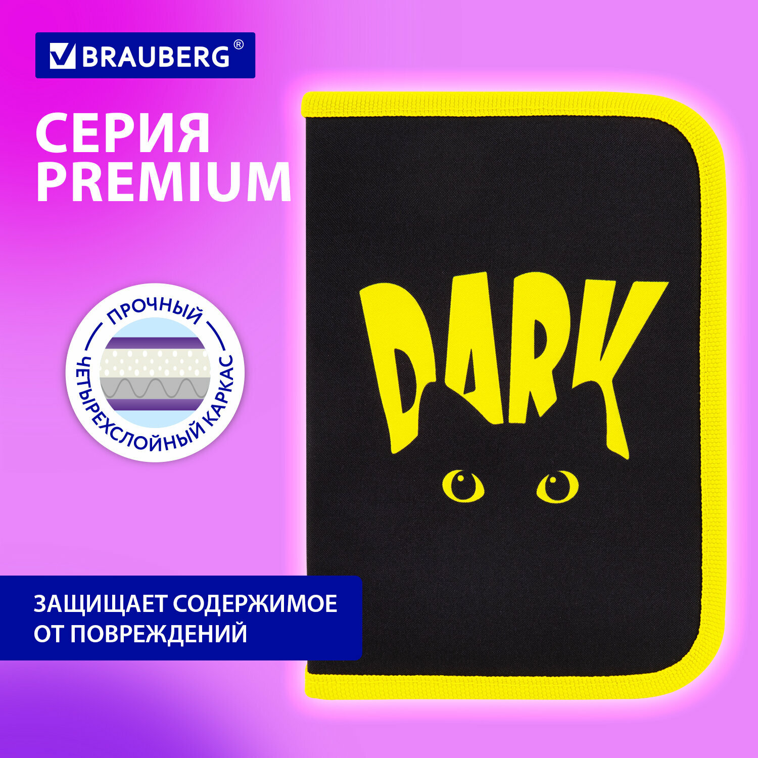 Пенал BRAUBERG с наполнением, 1 отделение, 1 откидная планка, 24 предмета, 21х14 см, "Dark cat", 272351 670 ₽