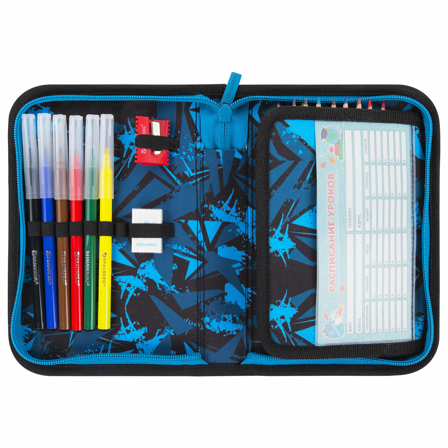 Пенал Brauberg с наполнением, 1 отделение, 1 откидная планка, 24 предмета, 21х14 см, Night race, 272352 информация: