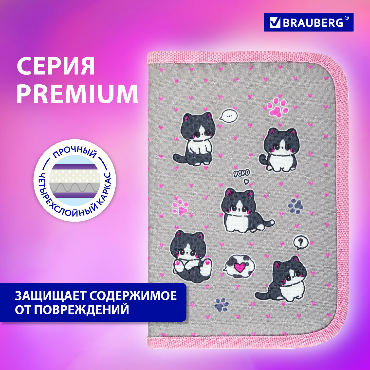 Отзывы на Пенал Brauberg, 1 отделение, полиэстер, 21х14 см, Cat patches, 272327