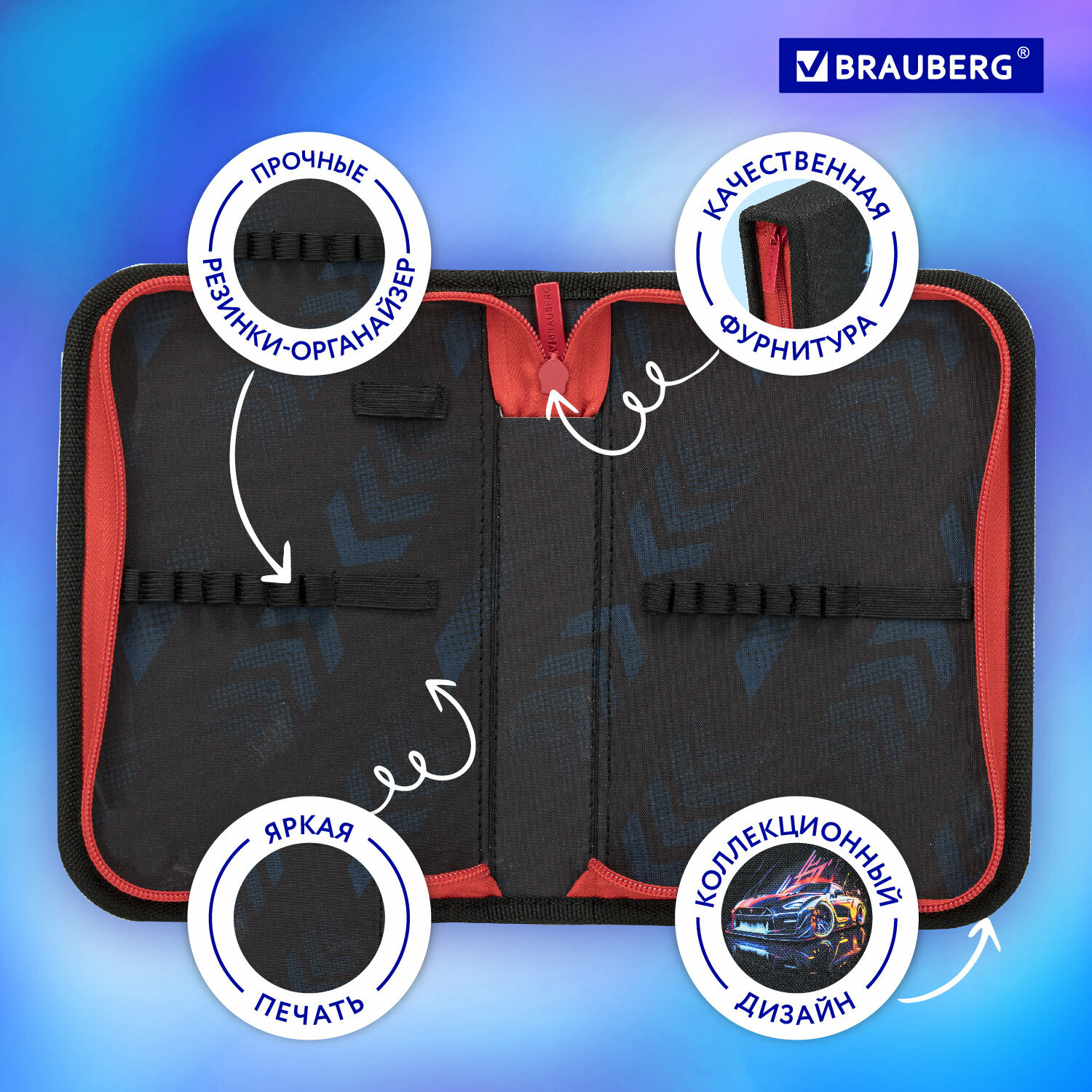 Пенал-футляр Brauberg, 1 отделение, органайзер, полиэстер, 22x9х5 см, Night driver, 272314