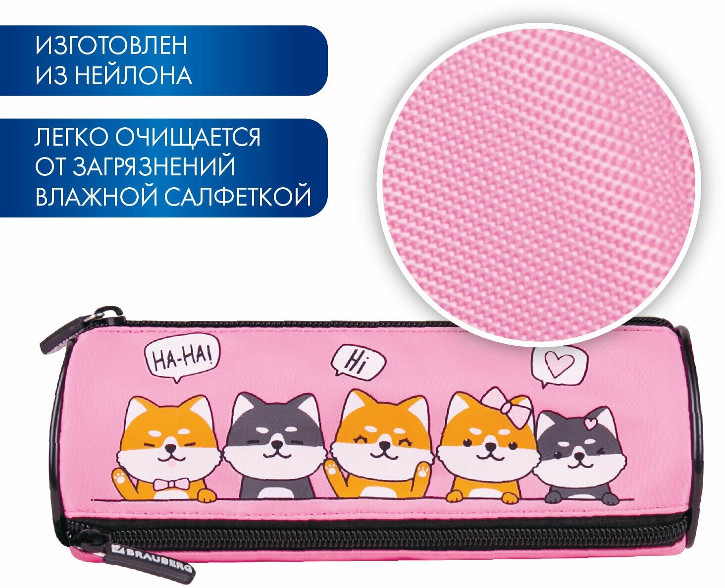 Пенал мягкий BRAUBERG, 3 отделения, нейлон, 21х7х7 см, "Puppies", 270839