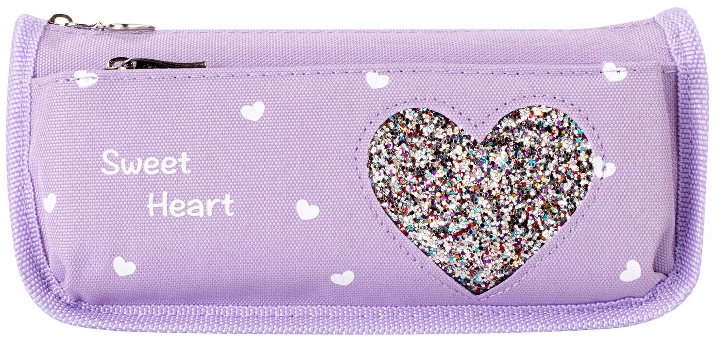 Пенал мягкий юнландия, 2 отделения, полиэстер, "Heart", фиолетовый, 21х6х9 см, 270259 630 ₽