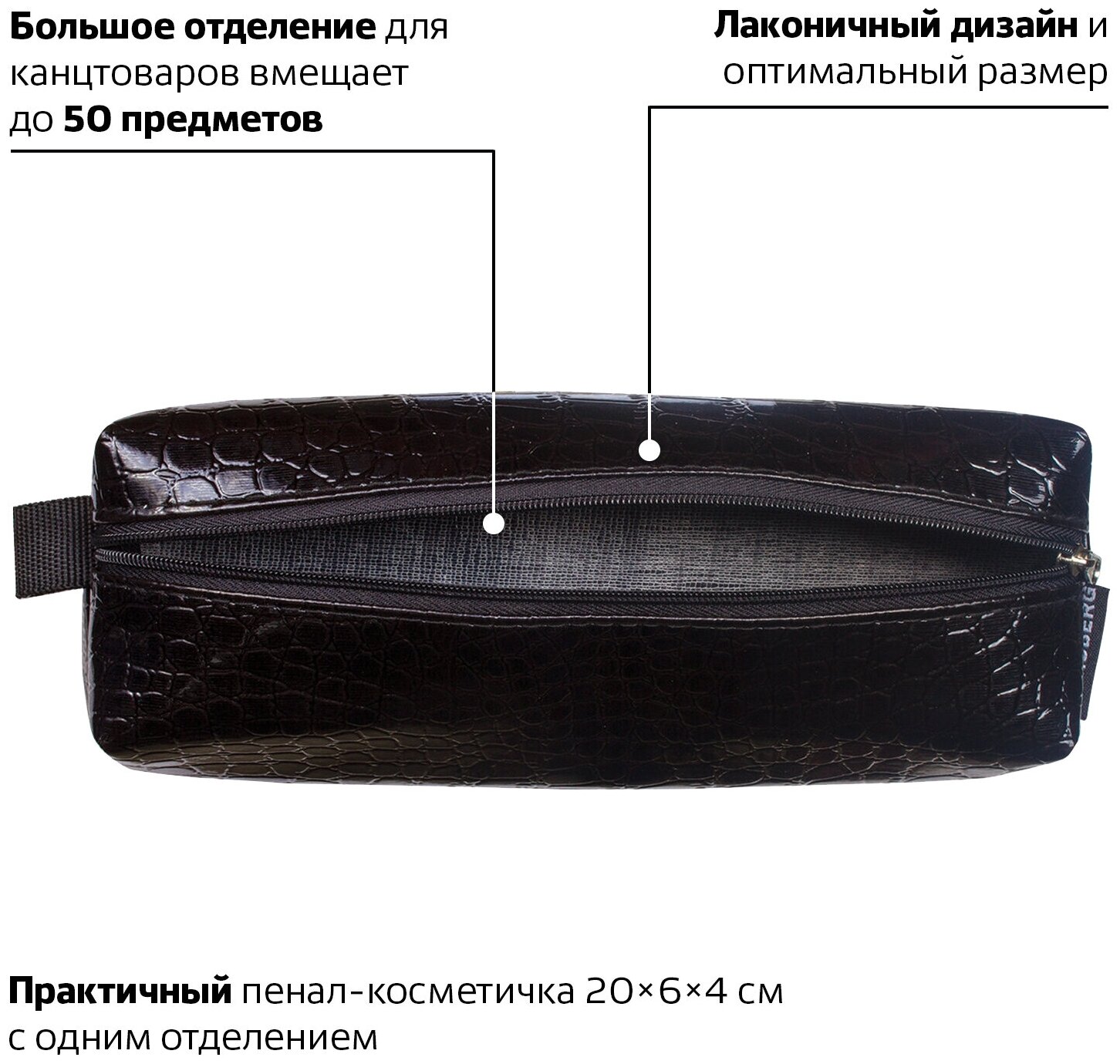 Пенал-косметичка BRAUBERG "Ultra black", "крокодиловая кожа", 20х6х4 см, 223909 (арт. 223909)
