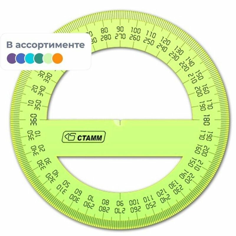 Отзывы на Транспортир СТАММ 10 см, 360 градусов, пластик, тонированный, прозрачный (ТР41)