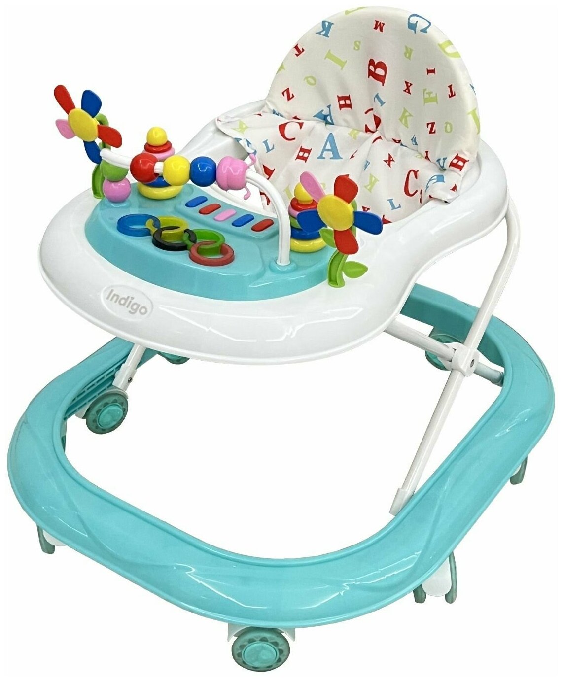 10 цен на Ходунки музыкальные INDIGO ABC C, силиконовые колеса, подсветка, бирюзовый