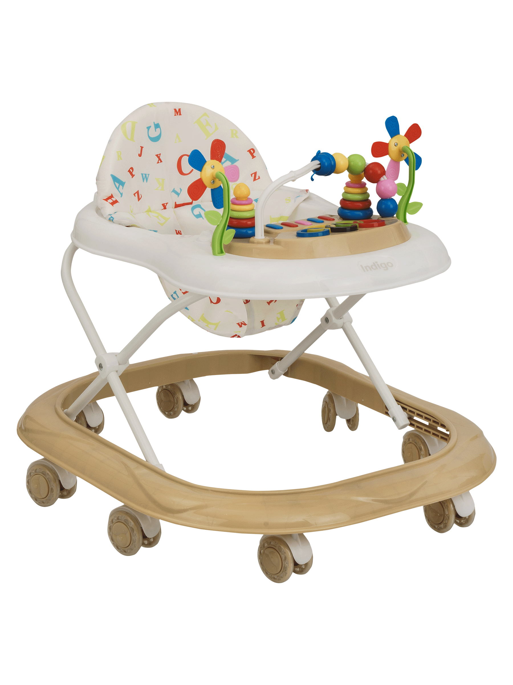 Ходунки музыкальные INDIGO ABC C, силиконовые колеса, подсветка, бежевый-белый информация: