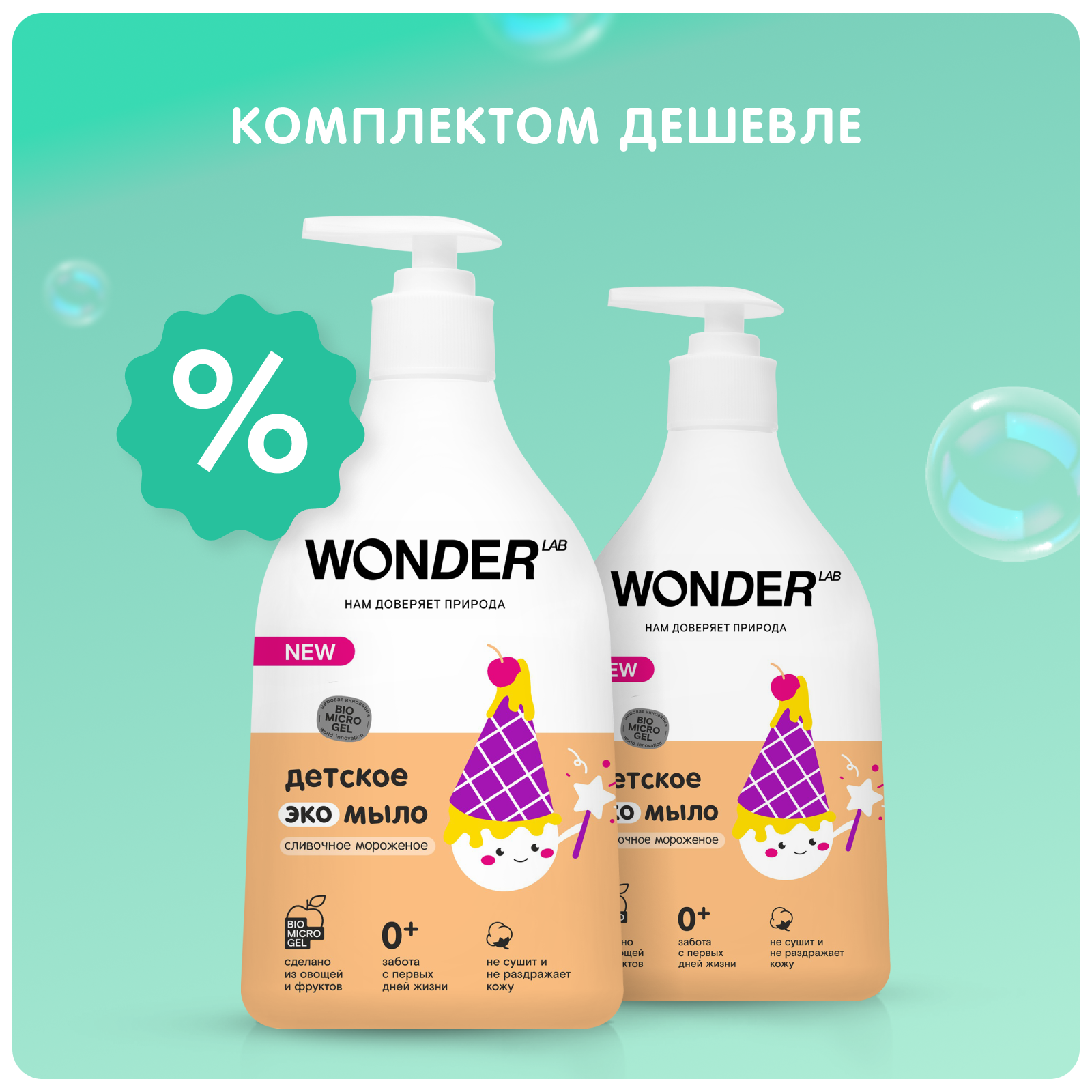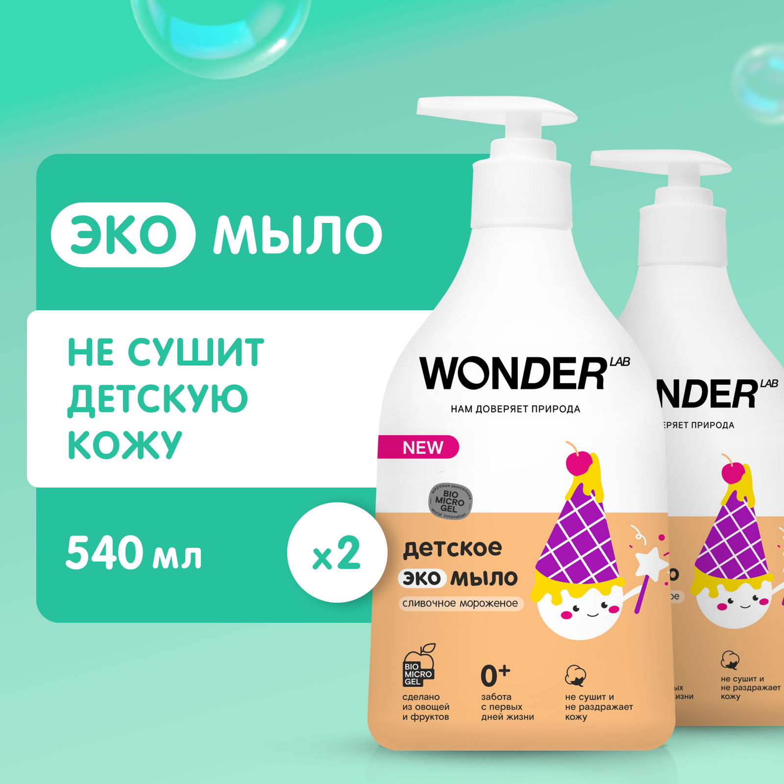 10 цен на Набор детское жидкое эко мыло WONDER LAB, гипоаллергенное мыло для детей и для новорожденных, с ароматом сливочного мороженого, 540 мл, 2 шт.