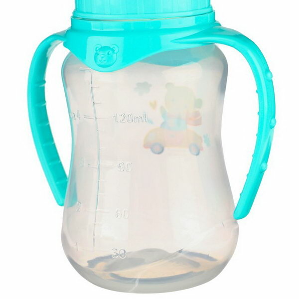 Бутылочка для кормления "Мишутка", классическое горло, приталенная, с ручками, 150 мл, от 0 мес., цвет бирюзовый информация:
