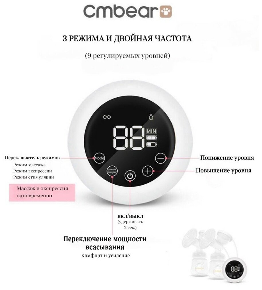 Двойной электронный молокоотсос CMBEAR, 9 уровней мощности информация: