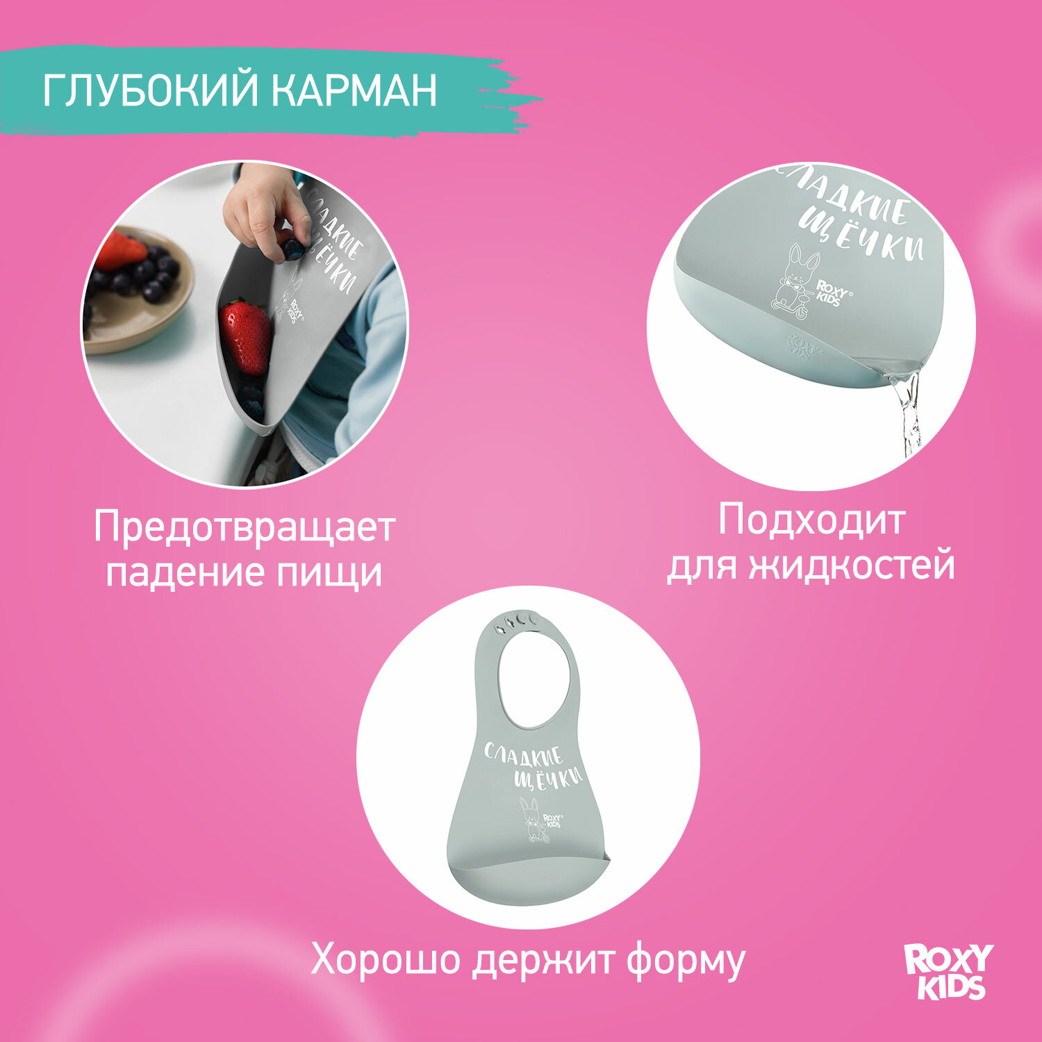 10 цен на Нагрудник для кормления ROXY-KIDS, слюнявчик пластиковый с кармашком, графит
