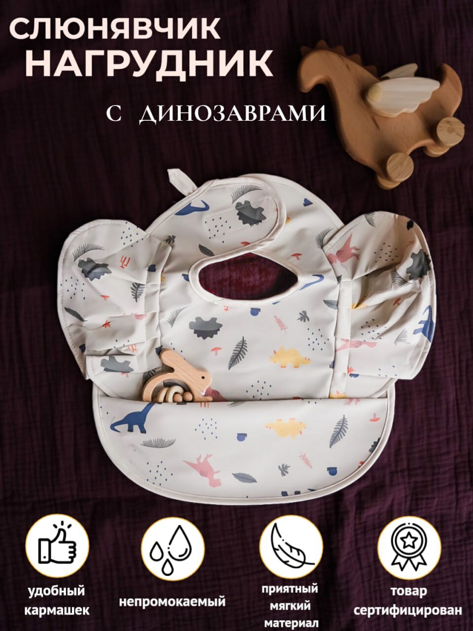Отзывы на Нагрудник для творчества и кормления "динозаврики" от Milky Charm