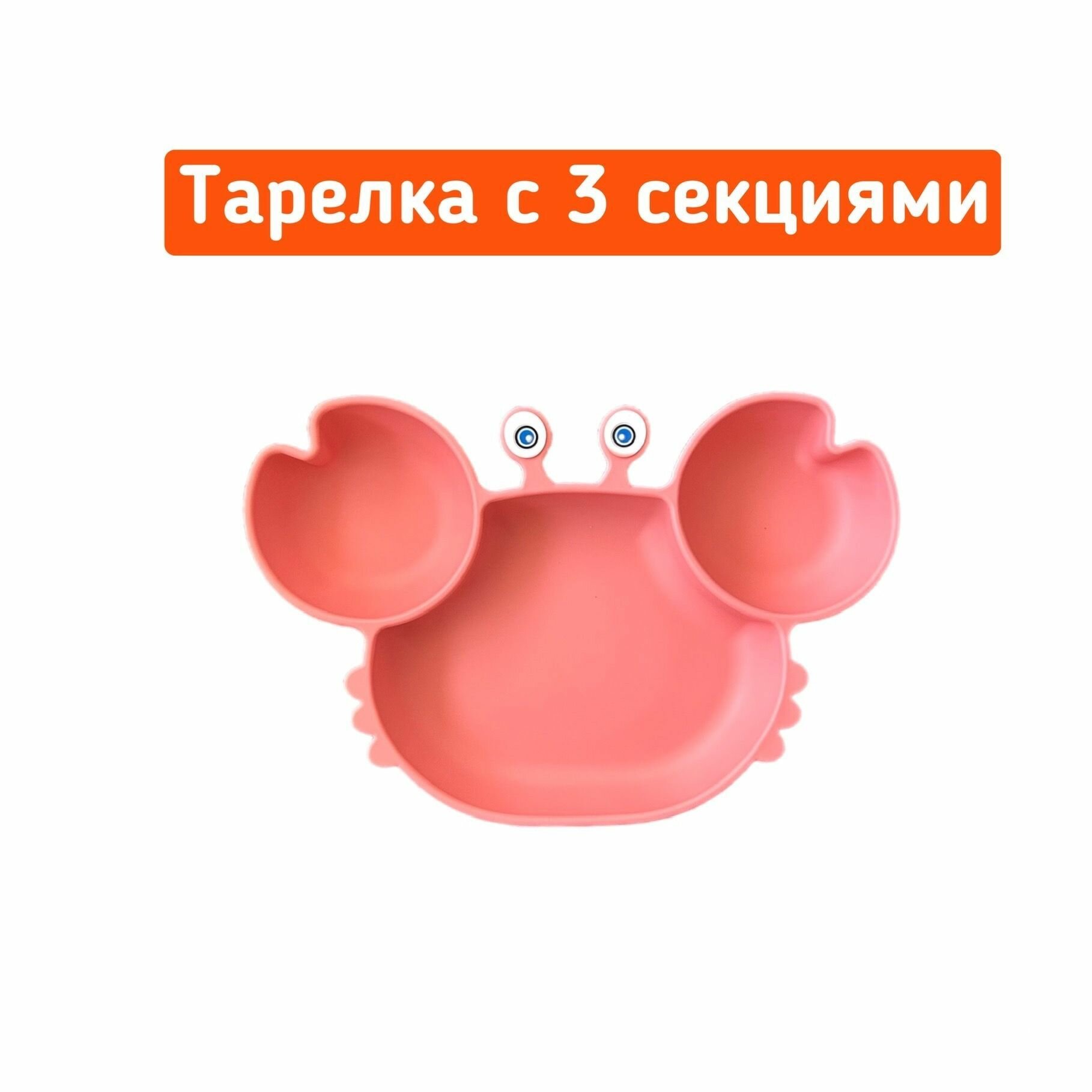Набор детской силиконовой посуды для кормления малыша, Крабик, 7 предметов розовый информация: