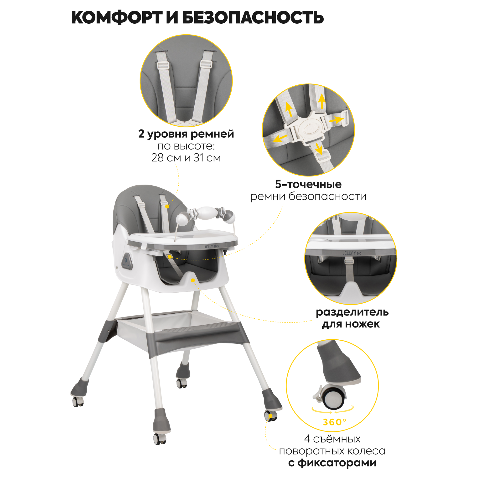 Стульчик для кормления ребенка Jovola Jelly Flex от 6 до 36 месяцев, темно-серый информация: