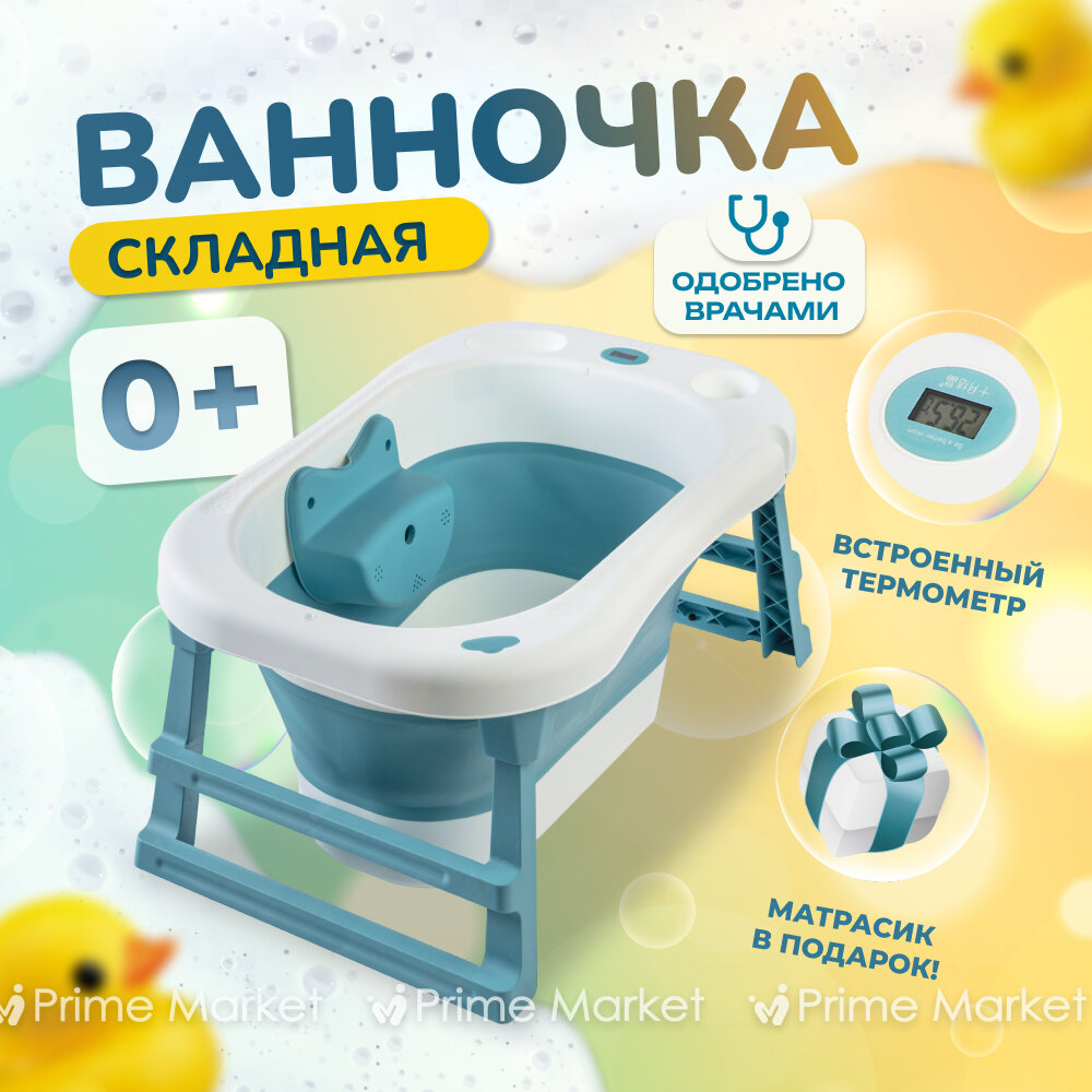 10 цен на Ванночка для купания новорожденных / детская ванночка голубая / 88*57*43 с термометром и подушкой / ванночка складная