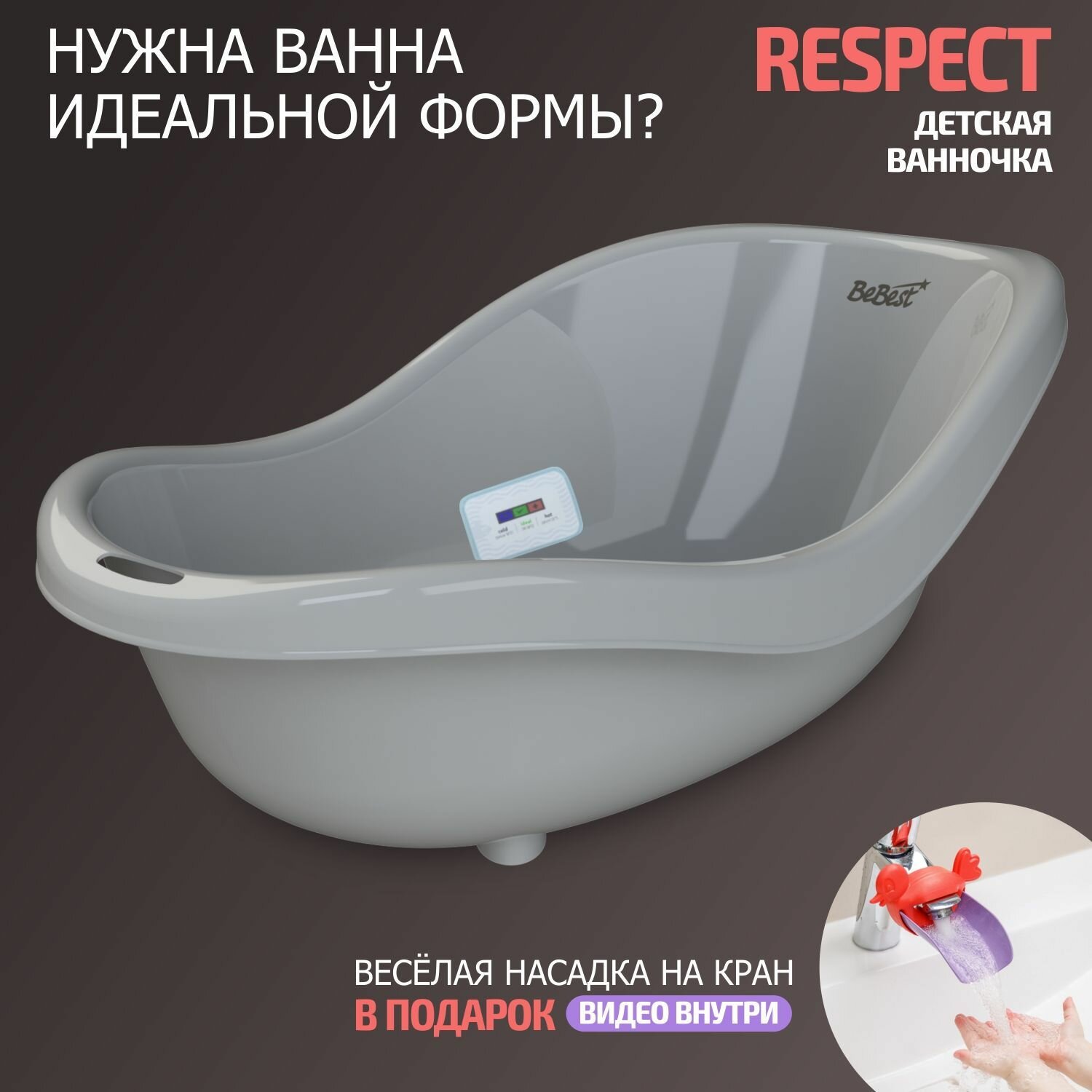 Ванночка для купания новорожденных BeBest Respect с термометром, серый информация: