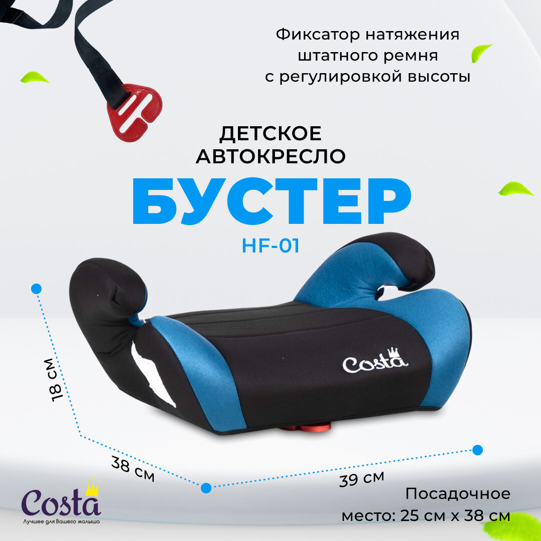 Детское автокресло бустер Costa HF-01, группа 2 и 3, от 4 до 12 лет, вес от 15 до 36 кг, цвет черно-синий информация: