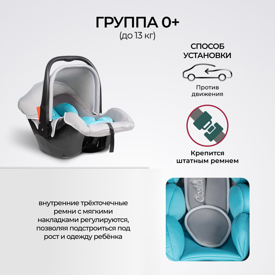 Детская автолюлька Costa HA-01 для новорожденных, от 0 до 13 кг, до 12 месяцев, цвет мятно-серый информация: