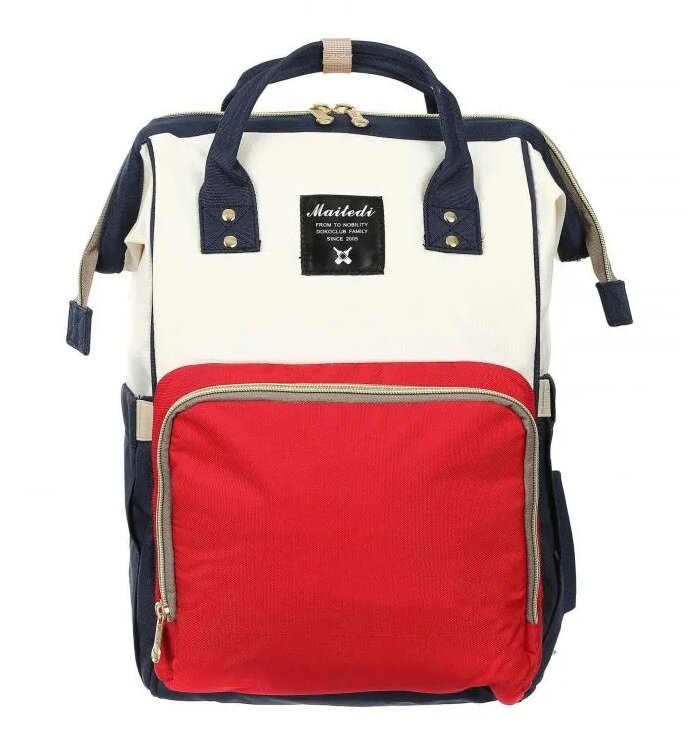 Сумка-рюкзак для мам с USB-выходом, сине-красная информация: