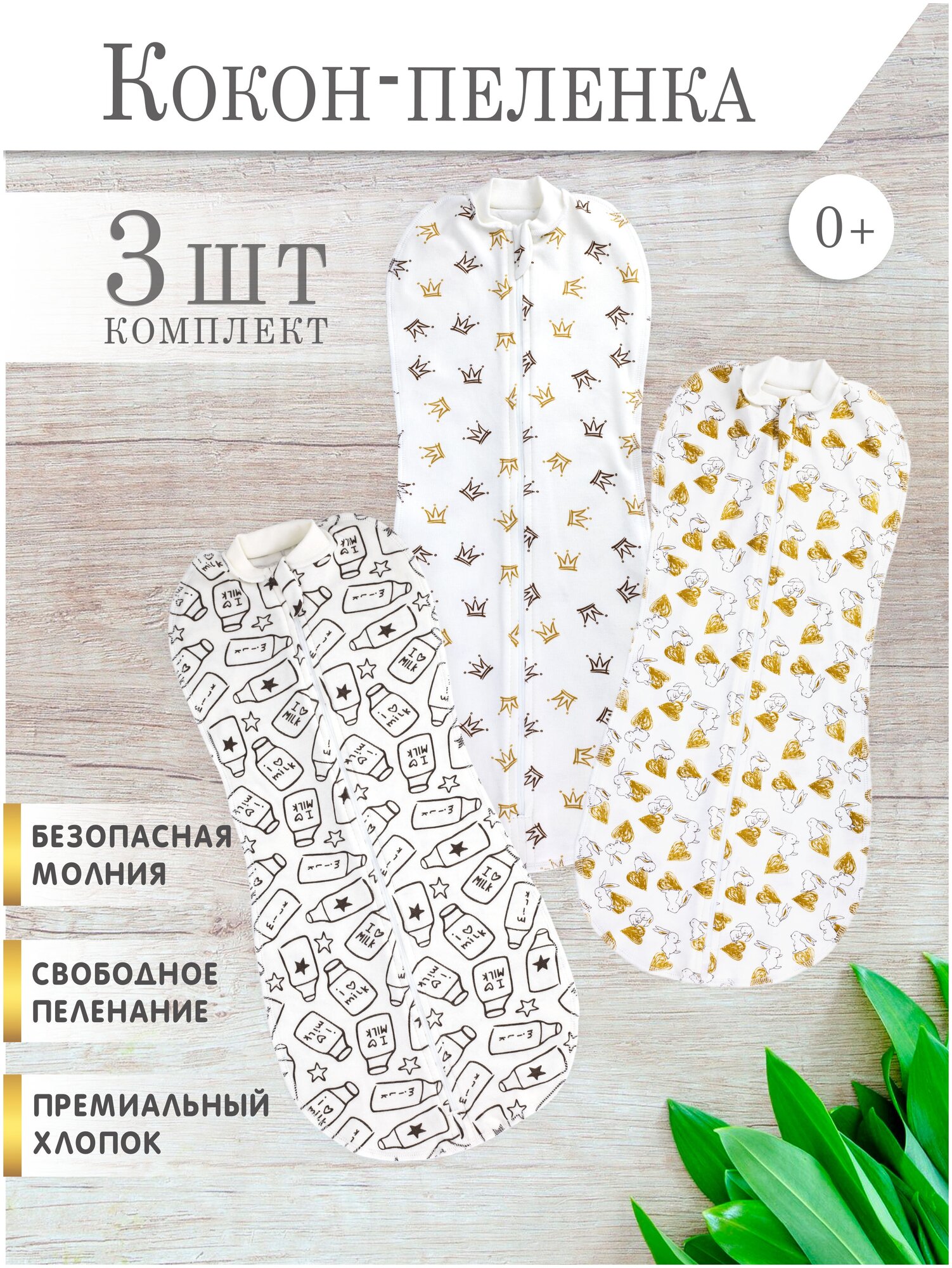 Пеленка кокон на молнии 3 шт, конверт для новорожденных информация: