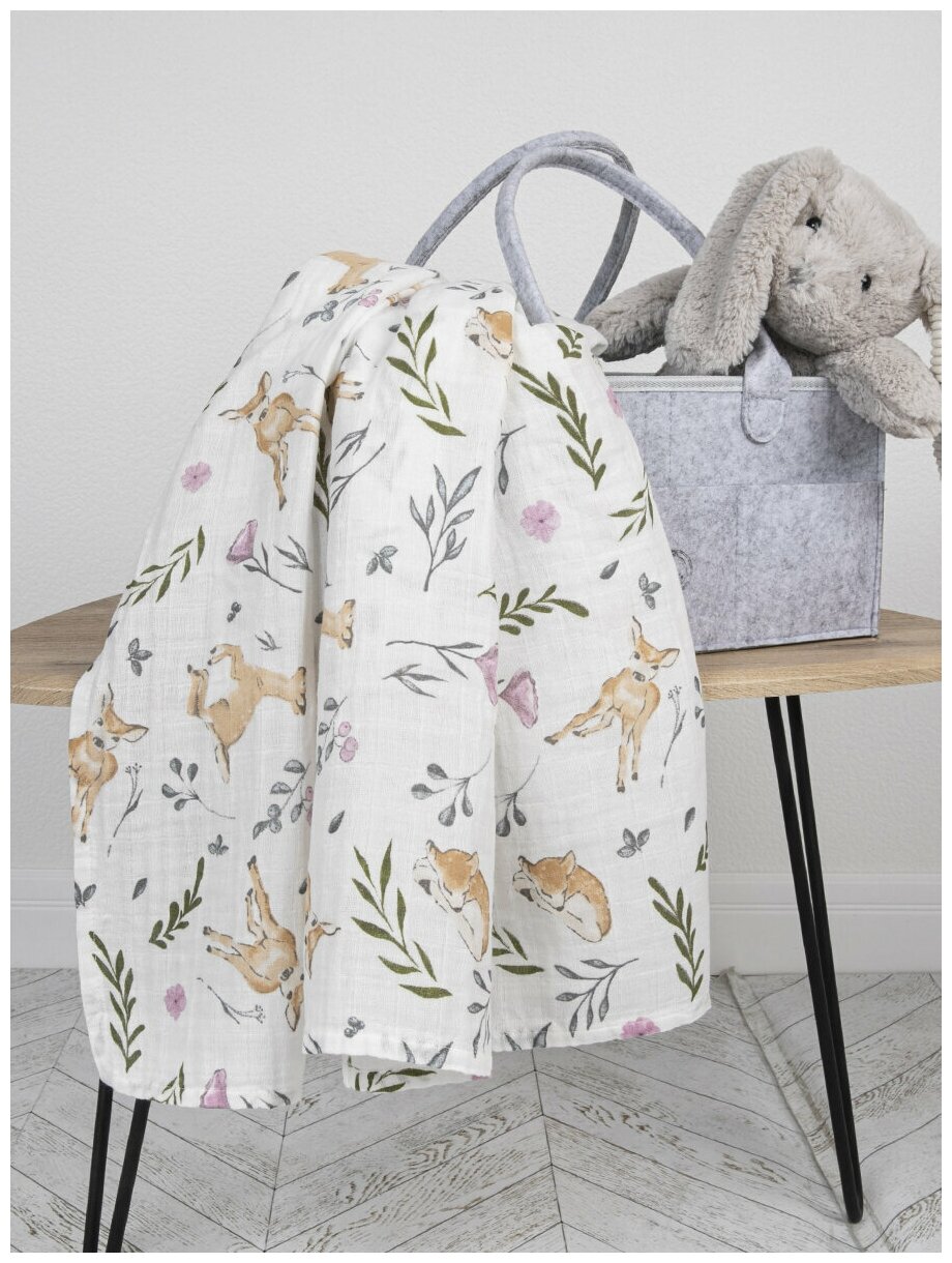 10 цен на Пеленки для новорожденных муслиновые 120х120 "Олененок Дашер", Хлопок 100%. Пеленка детская муслиновая для младенцев Baby Nice