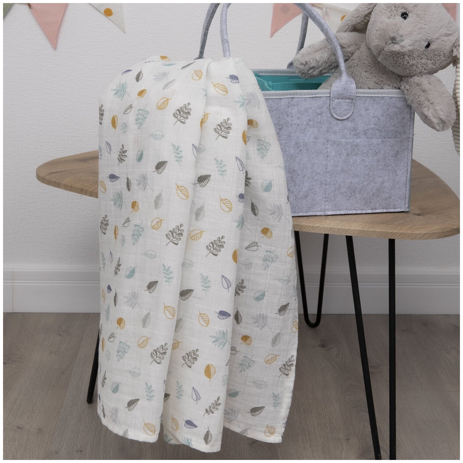 Детские пеленки для новорожденных муслиновые 120х120 "Листики", на выписку, на крещение Хлопок 100%