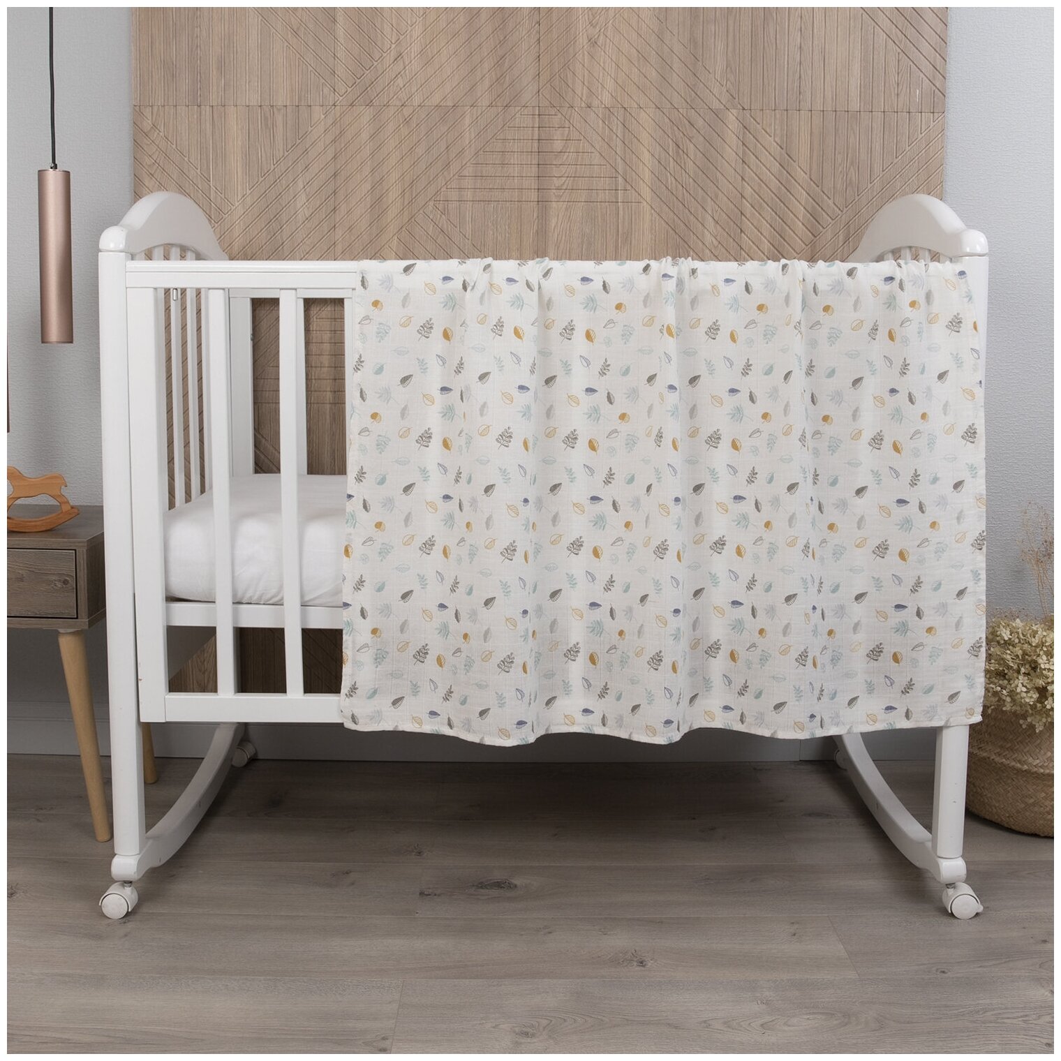 Детские пеленки для новорожденных муслиновые 120х120 "Листики", на выписку, на крещение Хлопок 100% информация: