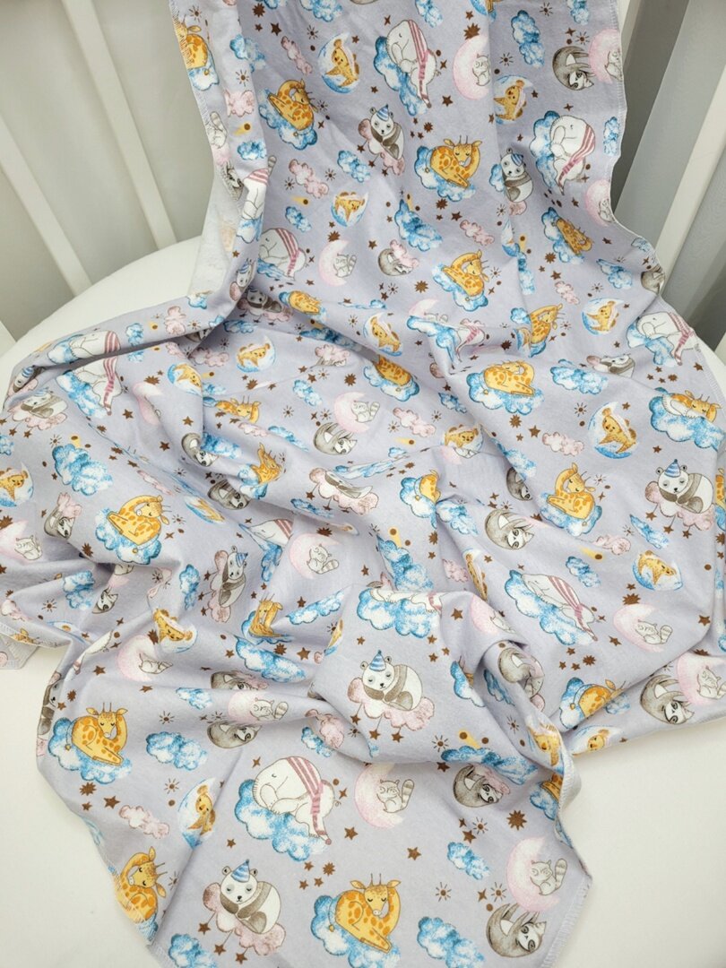 Пеленка из фланели "Спящие животные на сером" 90*120см,1шт 399 ₽
