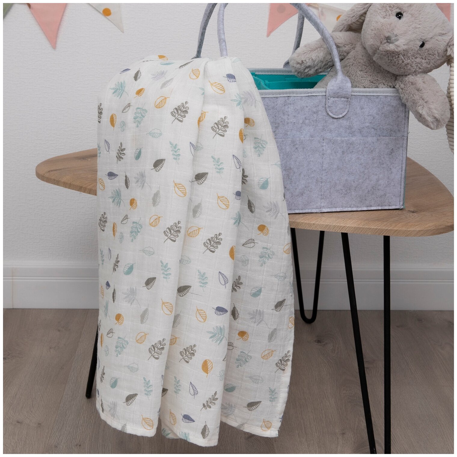 Пеленка муслиновая 120х120, "Листики"