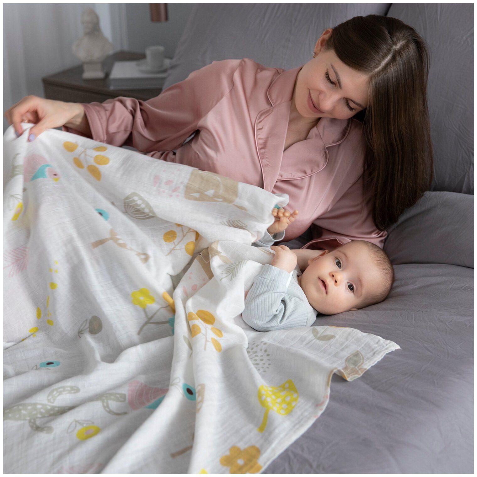 Пеленки для новорожденных муслиновые 120х120 "Вечерний лес", Хлопок 100%. Пеленка детская муслиновая для младенцев Baby Nice