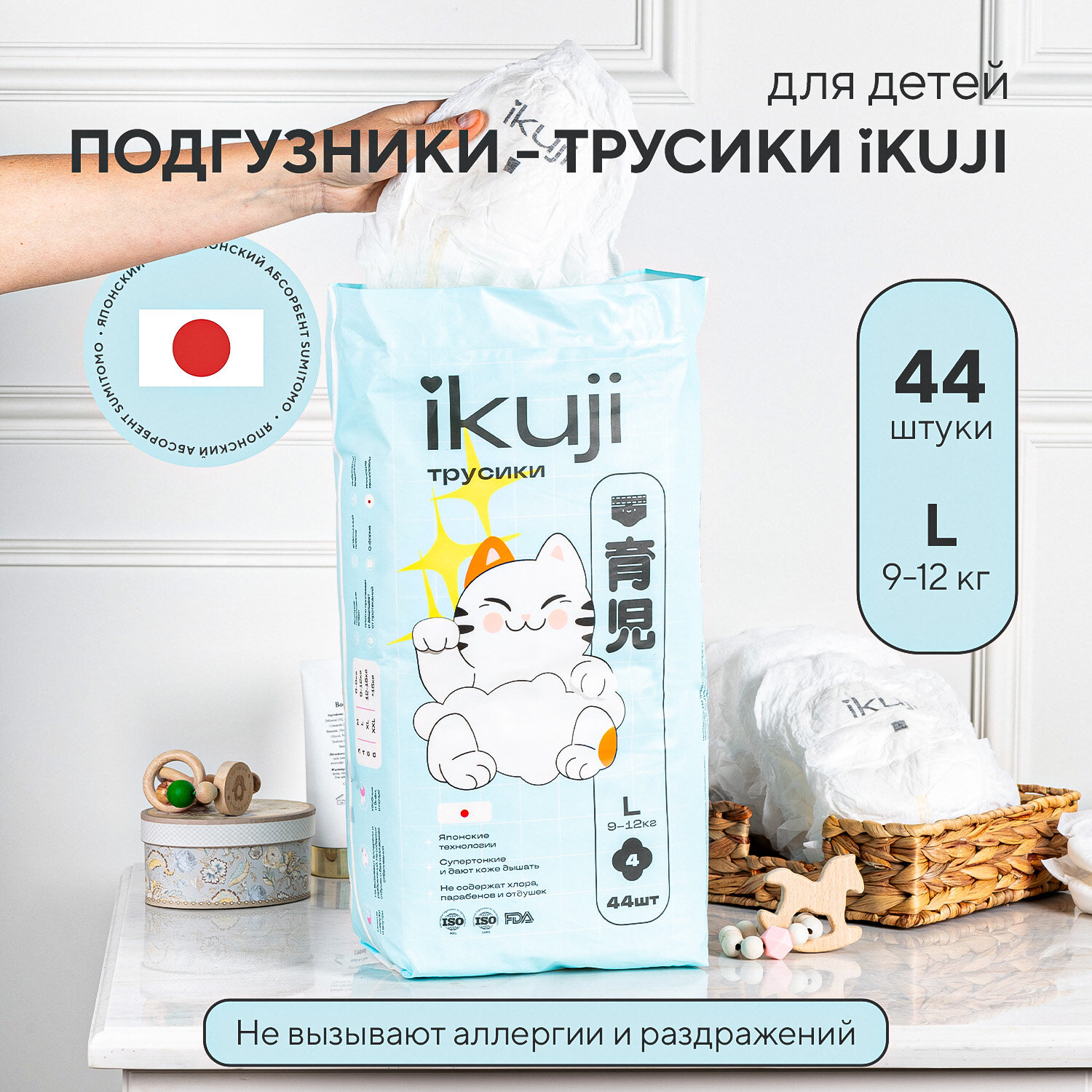 Подгузники трусики детские L 9-12 кг 44 шт IKUJI информация: