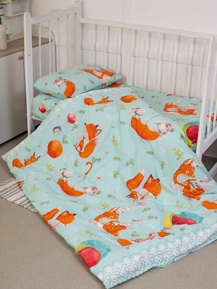 Комплект постельного белья в детскую кроватку, перкаль (Лисята) информация: