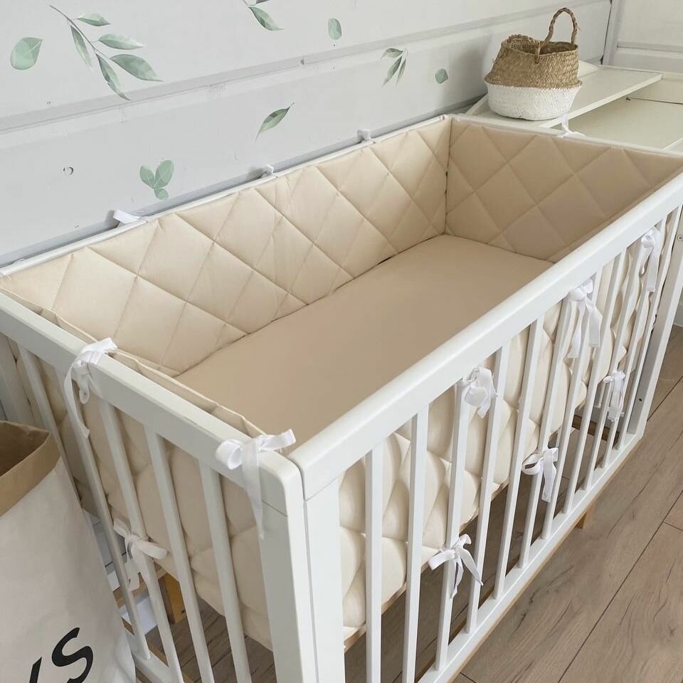 Бортики в кроватку для новорождённых стеганые MamiBro, 100% хлопок, 60х30 см - 2 шт, 120х30 см - 2 шт, светло бежевый информация: